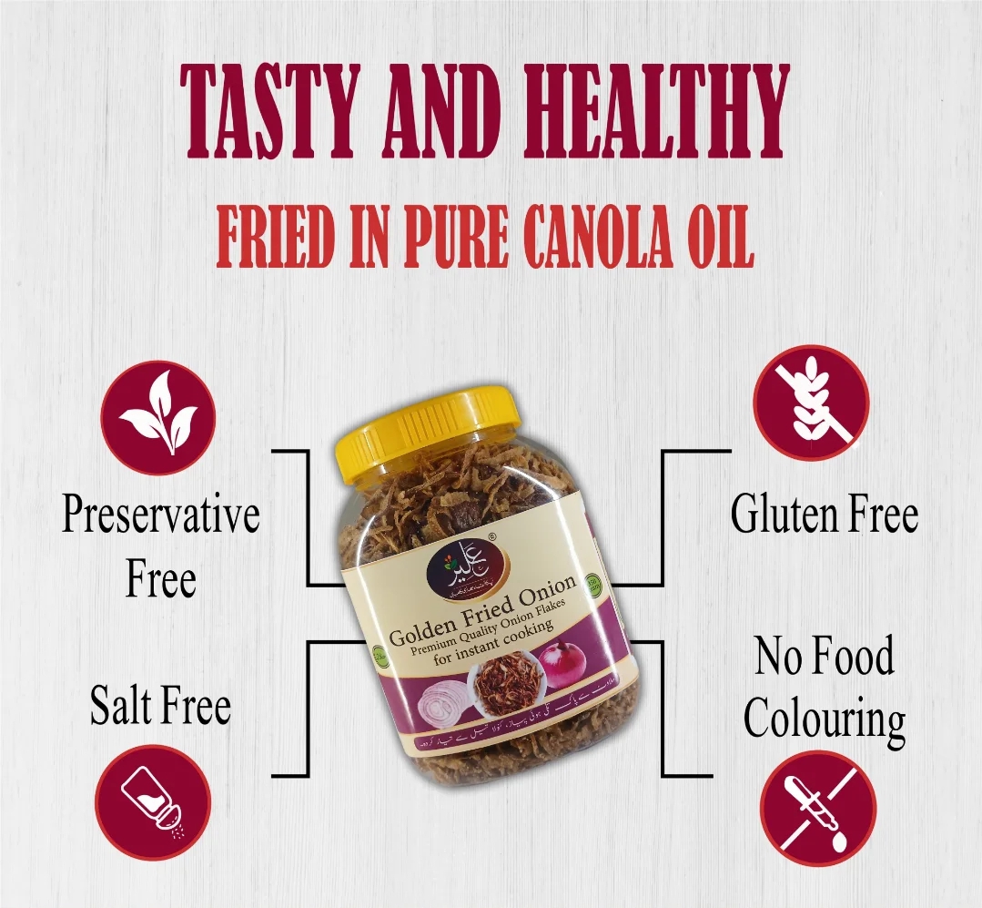 Perfect for biryani, pulao, qorma, haleem, and nihari, as well as soups, salads, sandwiches, burgers, or snacks, these fried onions enhance flavor and presentation effortlessly.